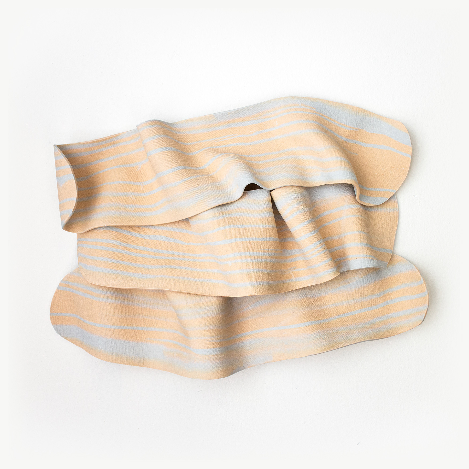 The Cut series, in development since 2019, focuses on capturing fleeting moments in the creative process. The fabric-like forms of the ceramic bodies reflect the spontaneous movements inherent in my sculpting process, using soft Nerikomi clay slabs. Each piece carries the traces of the many moments and efforts embedded in its creative process. Since its first public exhibition in 2020, Cut series has been continuing to evolve, with new explorations in scales and colours.