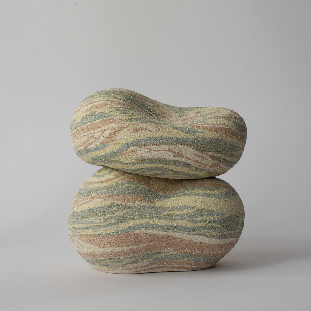 The Uri series is formed through a coiling process using blended pigmented clays. As the structure grows, subtle and unpredictable patterns emerge. Each work carries traces of accumulation, reflecting proximity, balance, and relational presence.